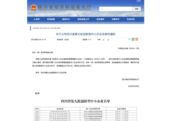 四川省第九批创新型中小企业