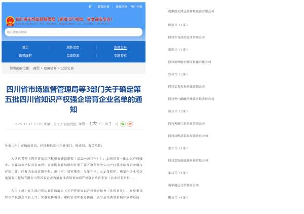 第五批四川省知识产权强企培育企业